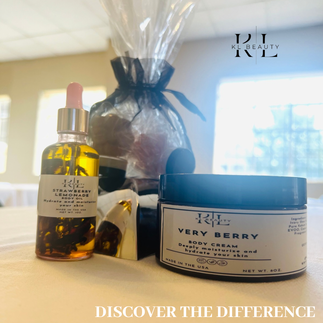 Our body cream comes with 3 different variety of scents. It’s a great way to find your favorite or favorite scents, and it comes in 8oz. sizes. Each scent is paired along with our KL Beauty Body Oils.